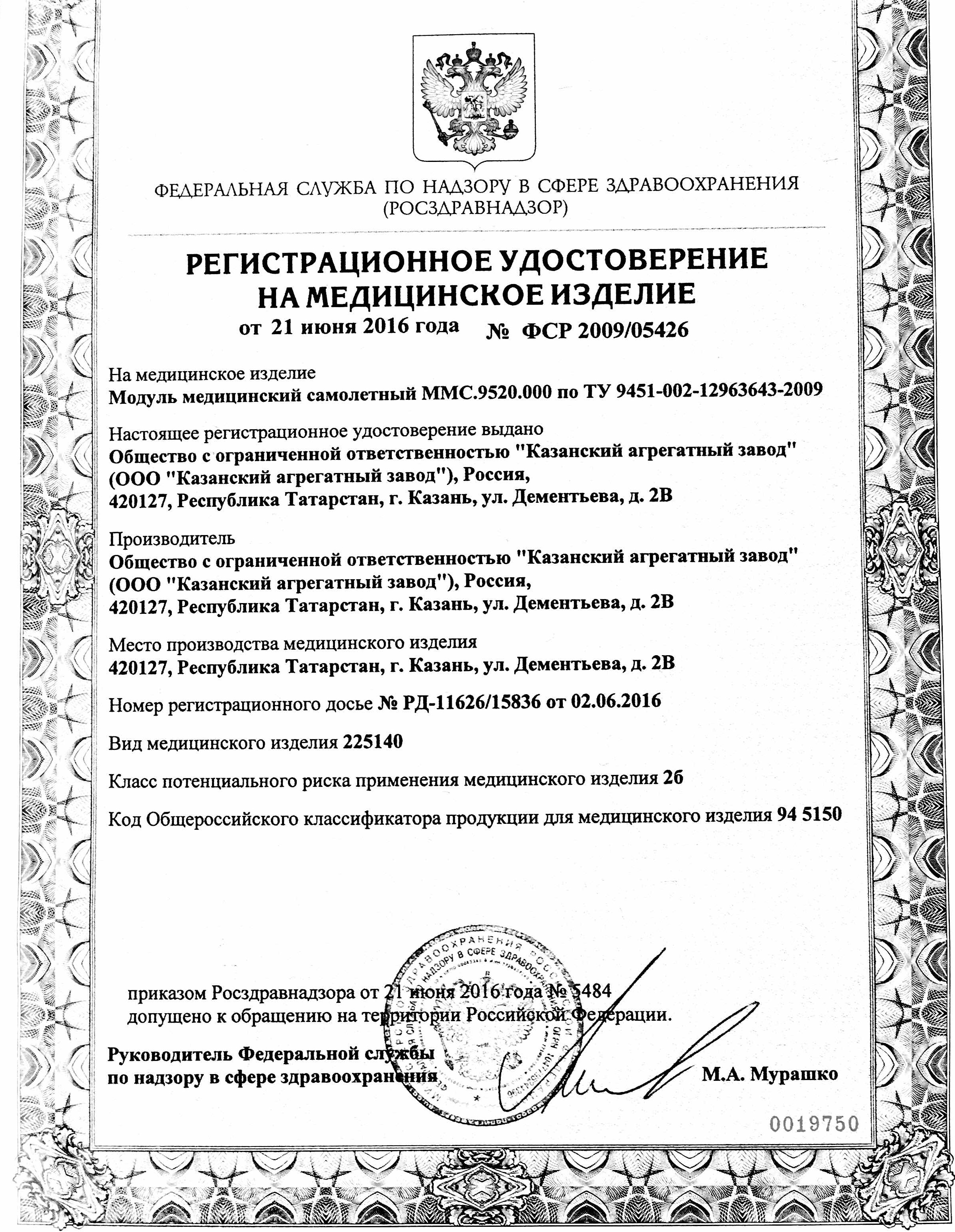№ ФС-99-04-006502 от 13 июня 2019 года - на осуществление деятельности по производству и техническому обслуживанию медицинской техники.